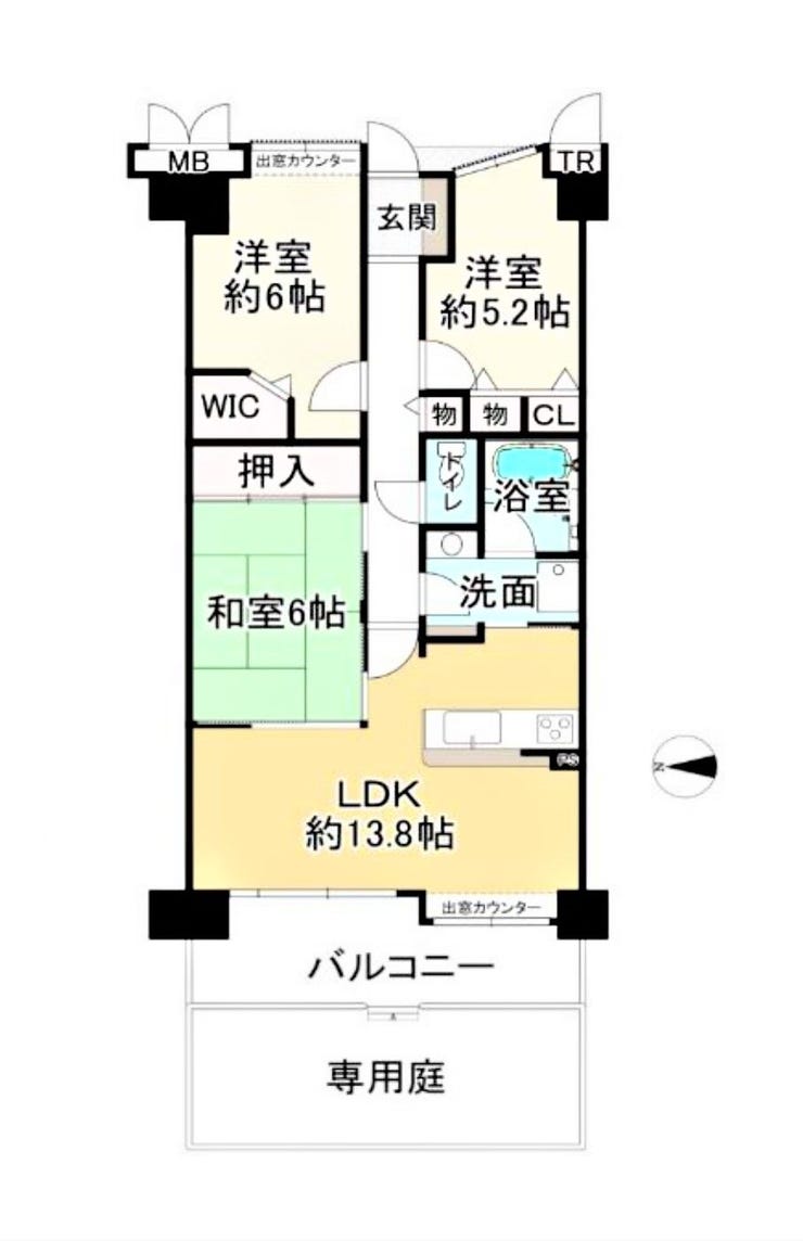 | 備考 | 1階 専用庭付き物件 令和6年8月設備新調(浴室、洗面所、トイレ、給湯器、ガスコンロ、キッチン水栓、レンジフード)、全室壁天井クロス張替、リビング床フロアタイル上貼り 令和7年9月アクセントクロス貼替(LDK・和室) |