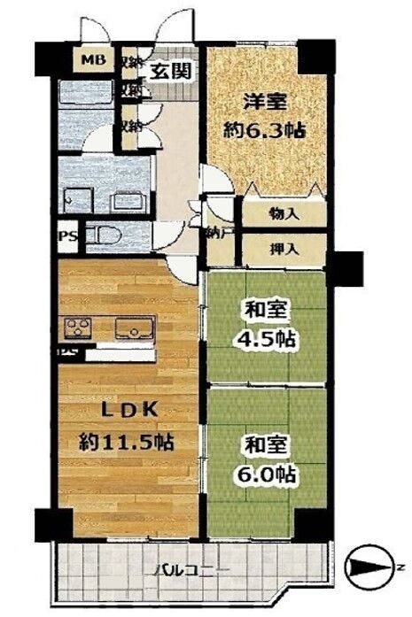 | 専有面積 | 壁芯 65.65㎡ | 所在階 | 10階建/5階部分 |